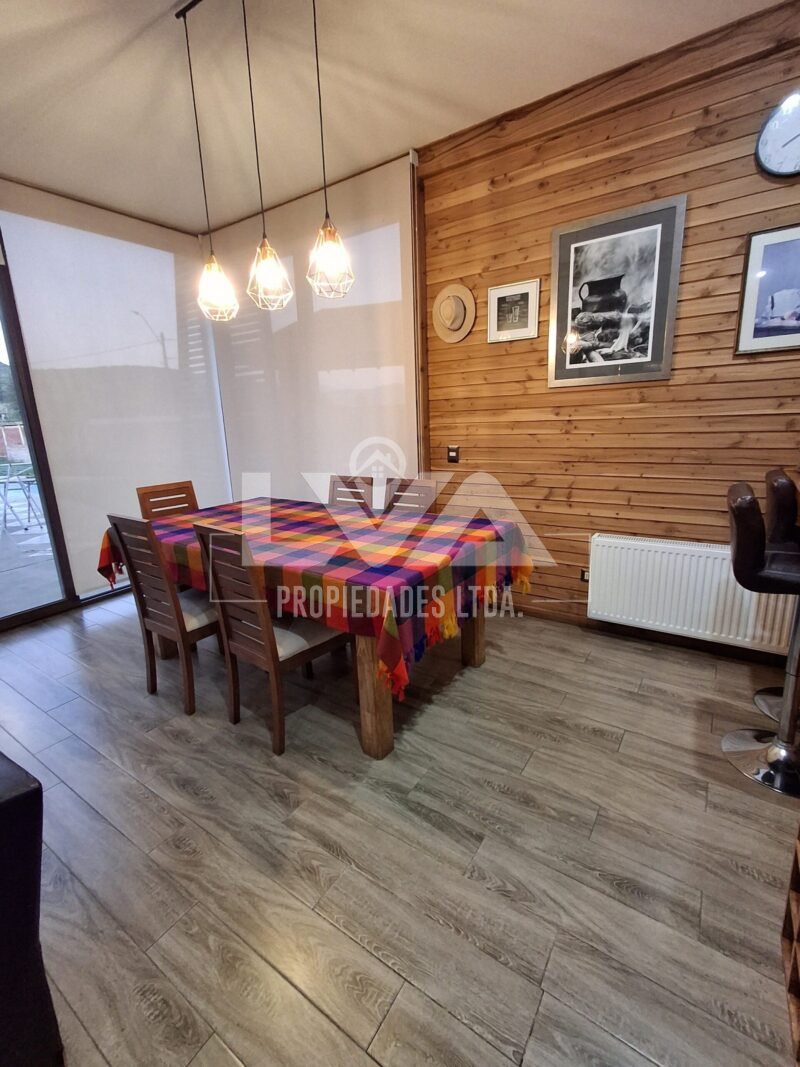 Características principales: Parcela con casa con Rol Propio, en terreno plano. Hermosa Parcela con casa, perfecta para ser habitada, arrendada o para uso comercial : Living comedor espacios amplios, cocina tipo americana con muebles, campana, encimera, horno eléctrico, 5 Habitación: La Principal, con walking closet y baño en suite; habitación con closet amplio; habitación pequeña; habitación de TV; habitación tipo oficina. 3 baños,, y toda la casa con calefacción central, además de calefacción a leña en living, todo con ventanales termopanel y cortinas blackout, piso cerámico toda la casa.