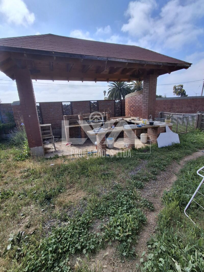 Espacios exteriores: Estacionamiento para 4 vehículos, portón eléctrico, piscina de 9 x 4 mtrs, iluminación exterior, bodega, quincho, cuarto techado lado de cocina, áreas verdes, patio posterior, laterales y antejardín.